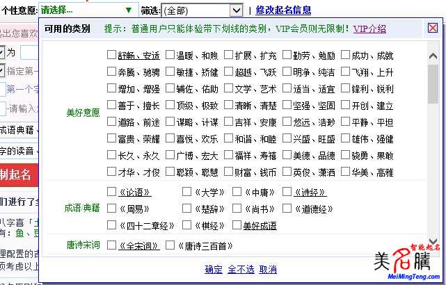 美名騰智能起名VIP會(huì)員高級(jí)功能